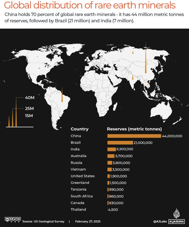 Based on the global reserves and production data, here are seven key countries that possess significant rare earth mineral deposits, moving from the largest holder downwards.