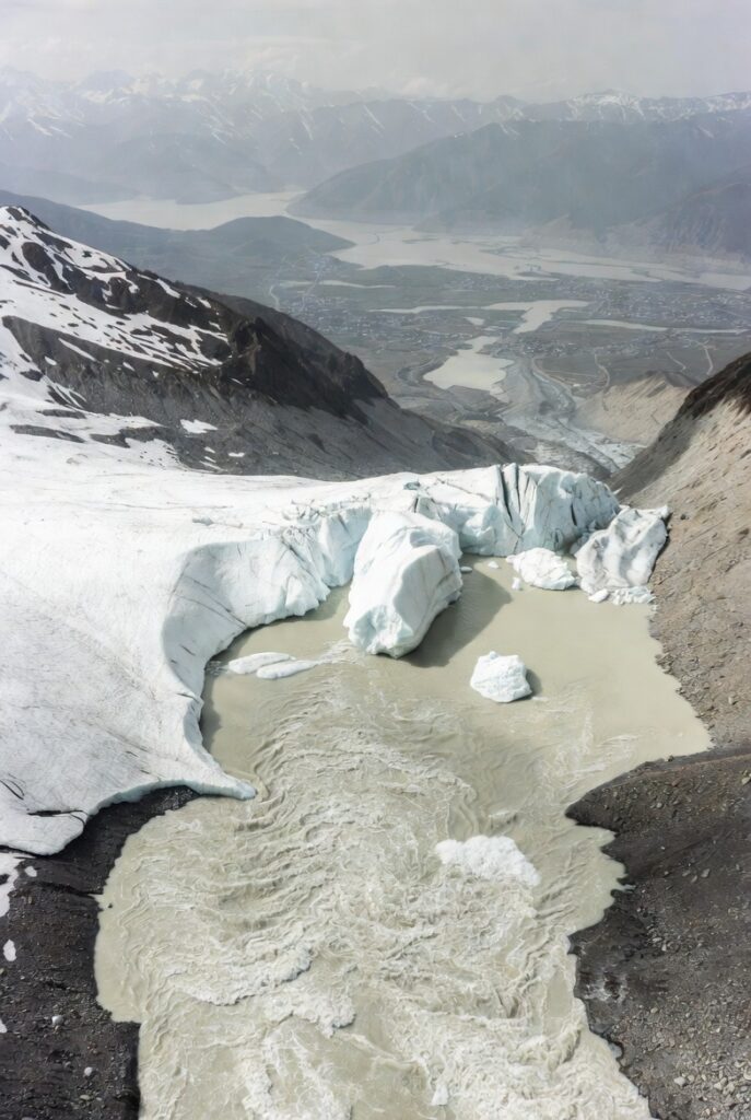 Human-induced climate change, primarily through greenhouse gas emissions, is supercharging the retreat of Himalayan glaciers. Satellite observations and ground measurements reveal that ice loss in the HKH has surged dramatically in recent decades.