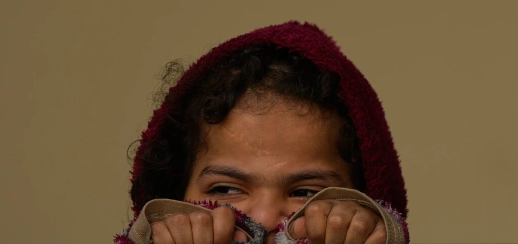 A girl displaced by Israeli airstrikes looks on at a school used as a shelter in Beirut, Lebanon.